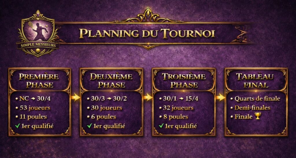 – Tableau : Poules composées le 16 janvier. Les 3ème Série seront convoquées dans un second temps.