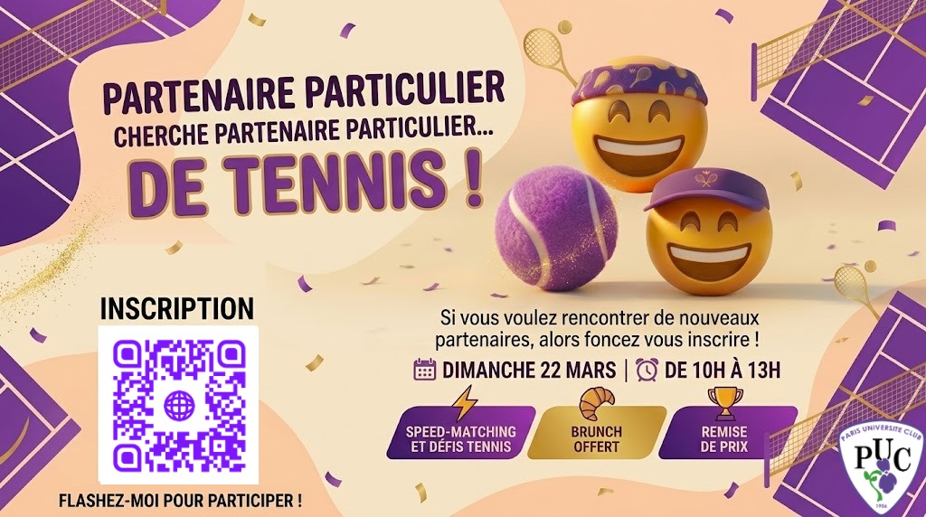 Envie de trouver de nouvelles têtes pour taper la balle ou organiser des matchs dans la bonne humeur ? Ne cherchez plus ! Vous êtes invité(e) à notre matinée « Partenaire Particulier Cherche Partenaire Particulier… de Tennis » !